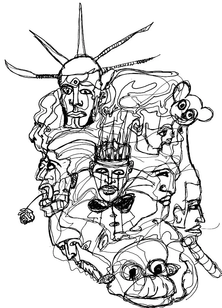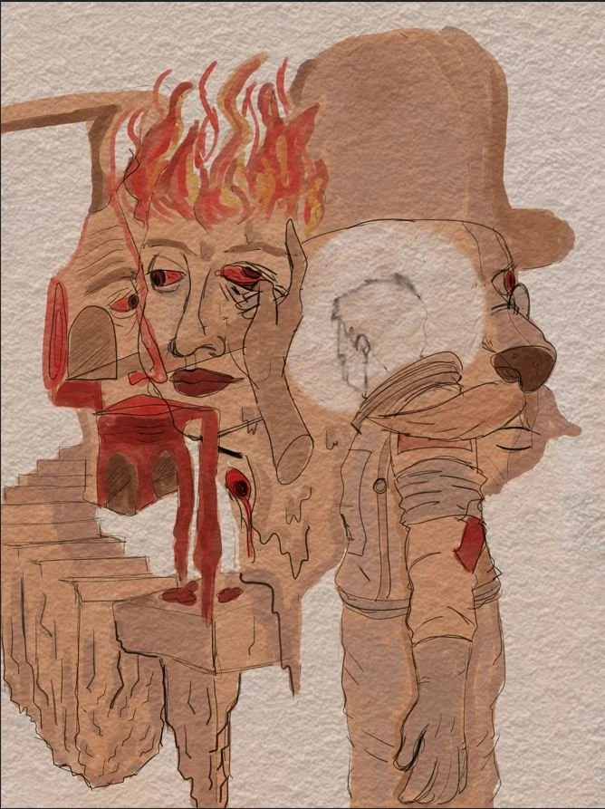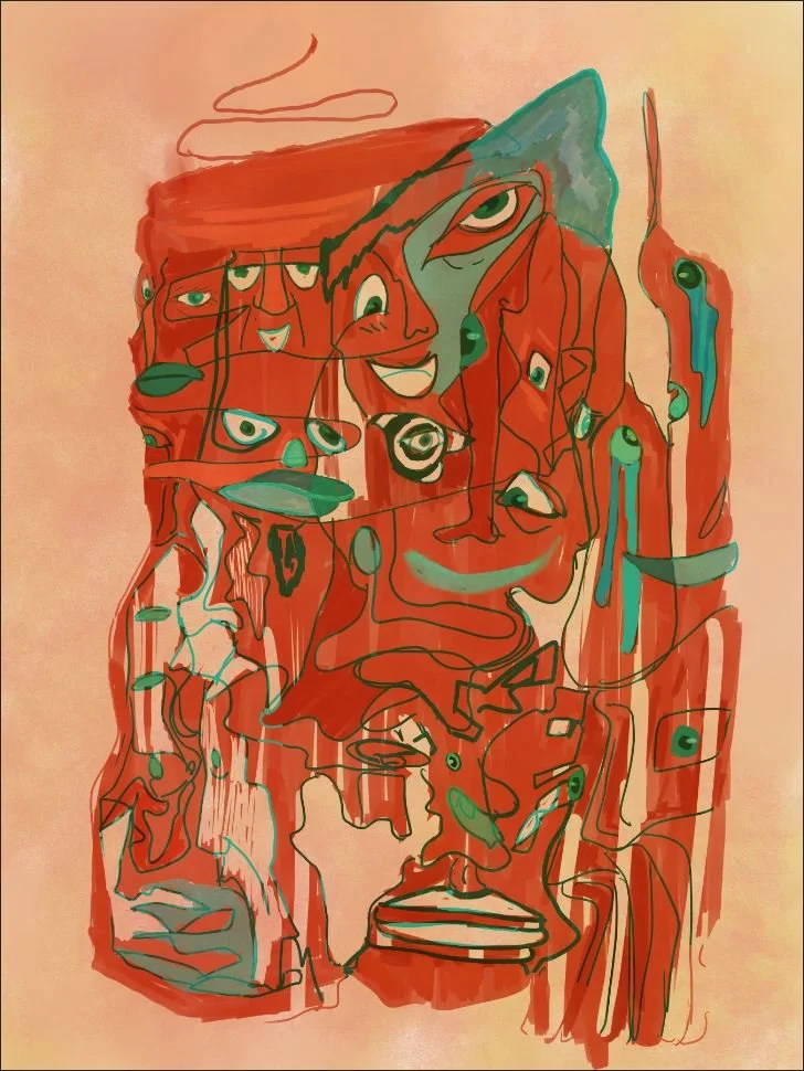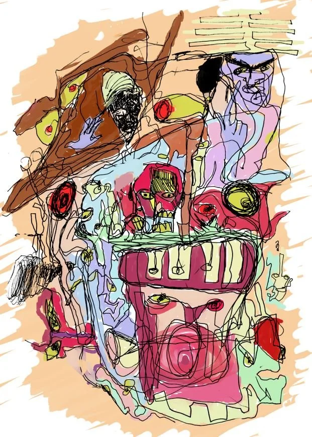 Acrylic Collage Watercolour Coffee Spills / Spills of War Screen Printing Mixed Media Ink, Coloured Pencil, Pastel & Graphite Digital Illustration - Black & White Digital Illustration - Colour